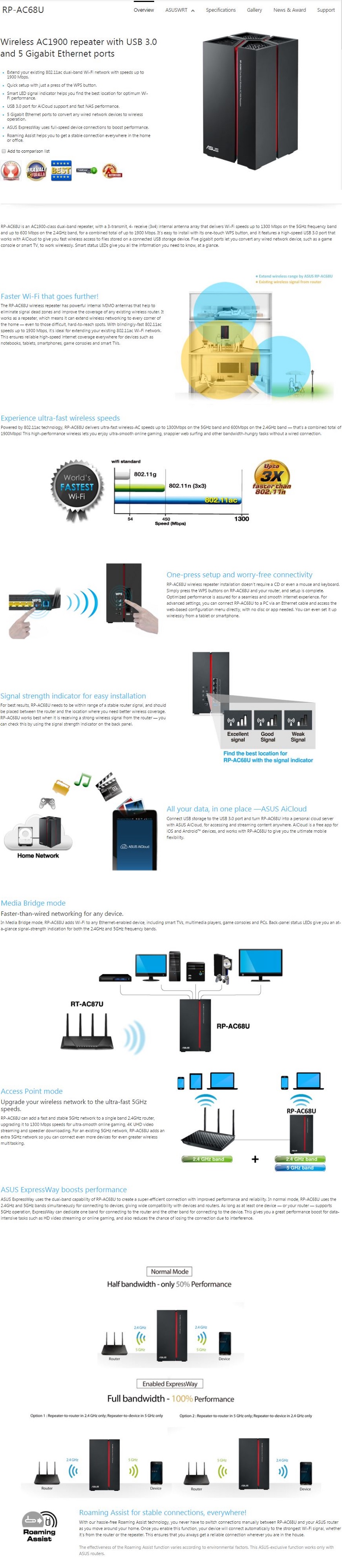 Asus (RP-AC68U) Wireless AC1900 repeater with USB 3.0 and 5 Gigabit Ethernet ports
