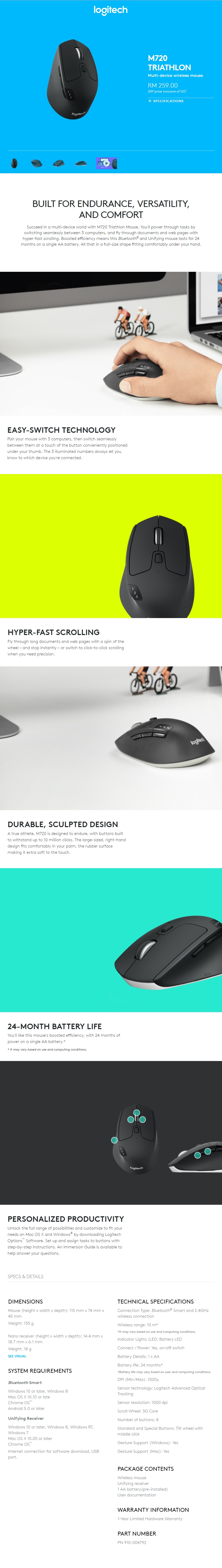 1 x Logitech M720 TRIATHLON Multi-device Wireless Mouse