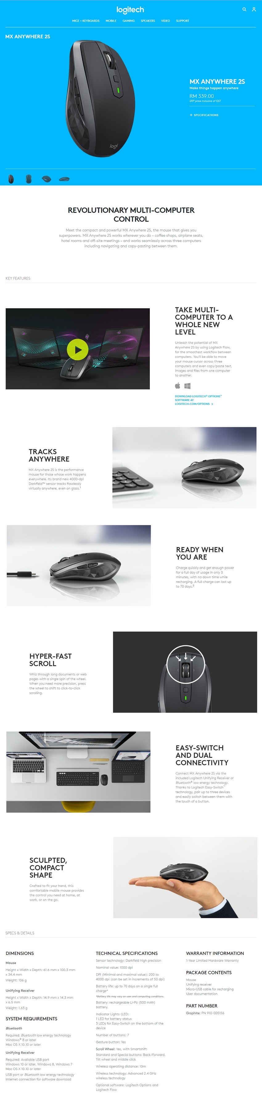 1 x Logitech MX Anywhere 2 Wireless Mobile Mouse