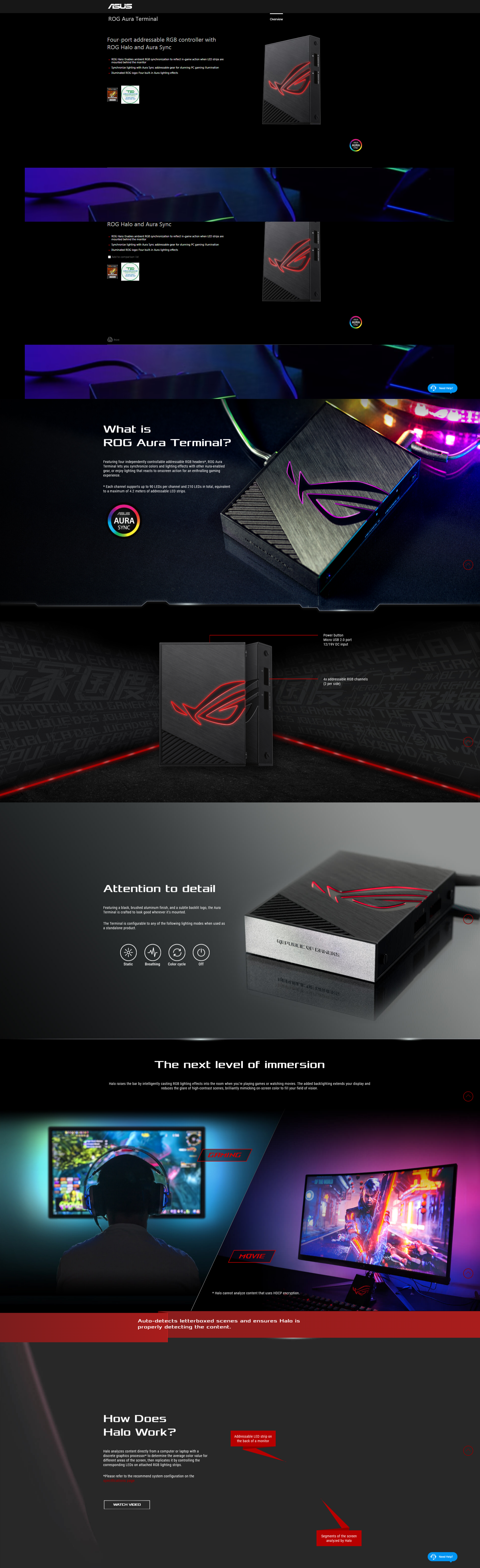 - ROG Halo: Enables ambient RGB synchronization to reflect in-game action when LED strips are mounted behind the monitor