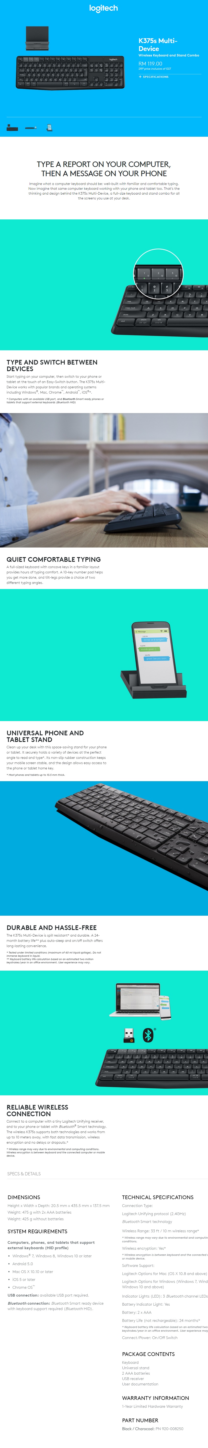 1 x Logitech K375s Multi-Device Wireless Keyboard