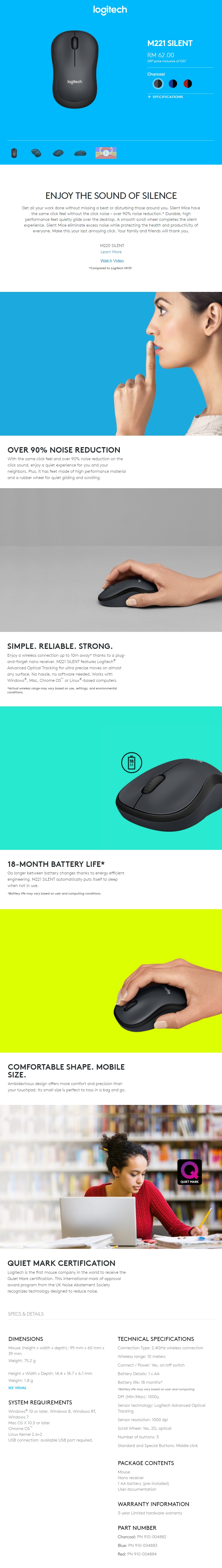 1 x Logitech M221 Silent Wireless Mouse