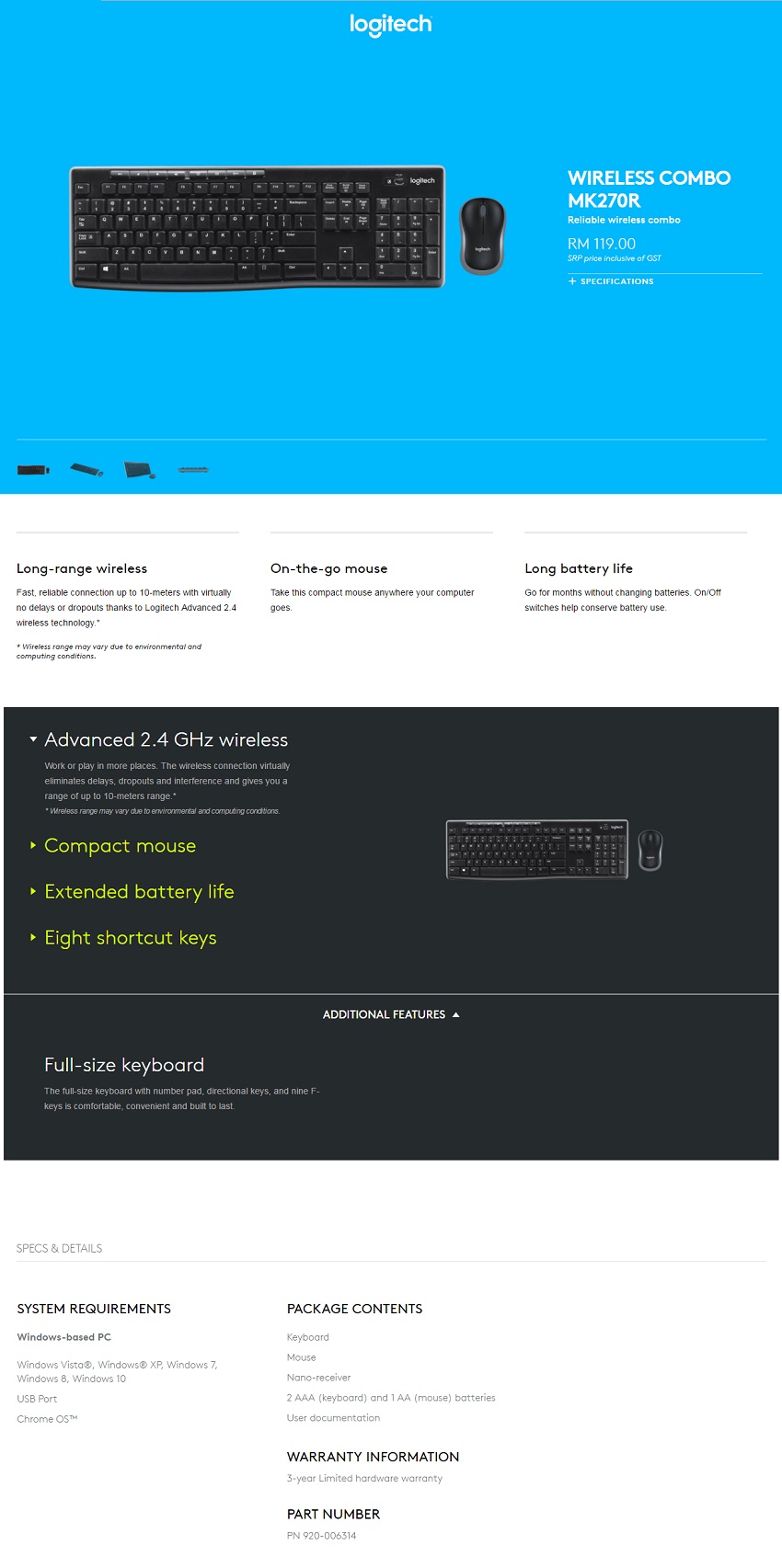 1 x Logitech MK270R Wireless Combo (Keyboard + Mouse)