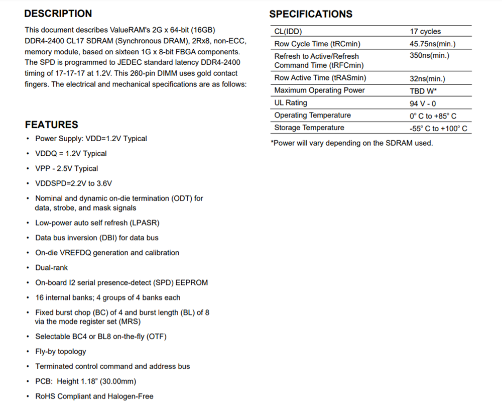• On-board I2 serial presence-detect (SPD) EEPROM
