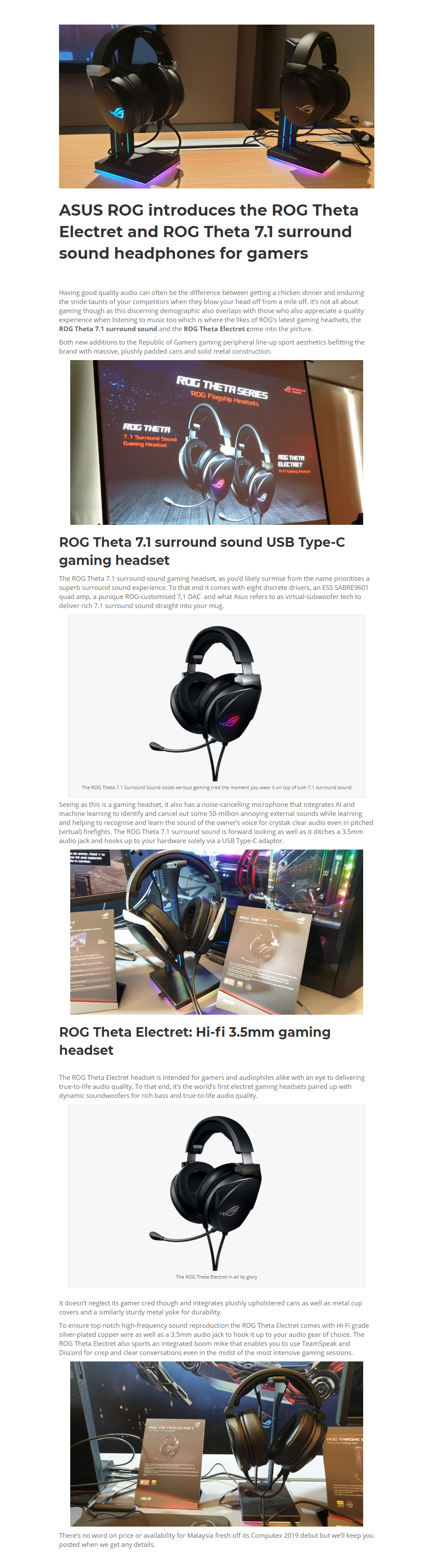 ROG Theta Electret 3.5mm gaming headset with Essence electret and bass drivers that deliver hi-fidelity sound and optimized bass, a certified built-in boom microphone and multiplatform support for PC, game consoles and mobile devices