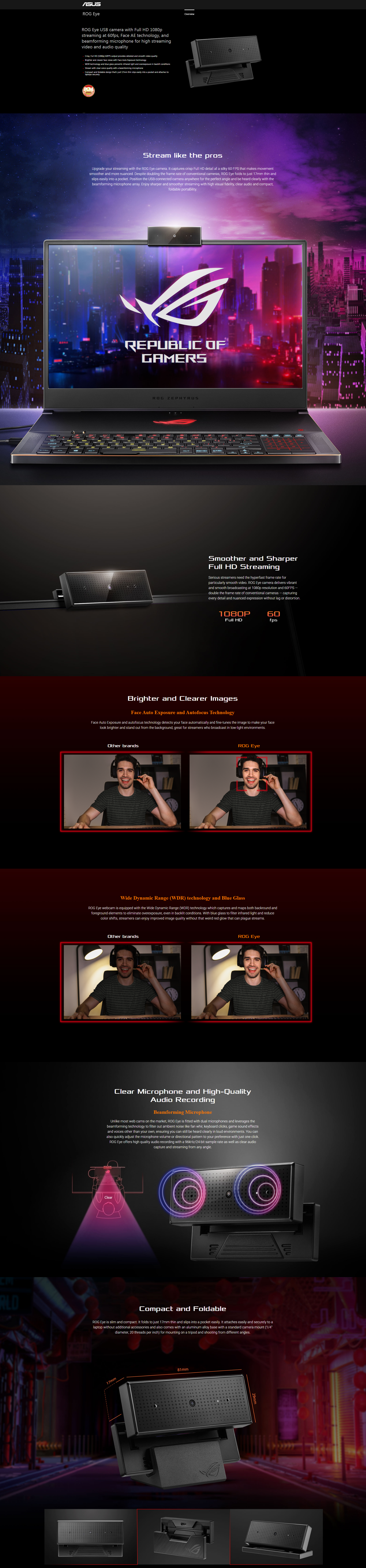 1x Asus ROG Eye USB camera with Full HD 1080p streaming at 60fps, Face AE technology, and beamforming microphone for high streaming video and audio quality