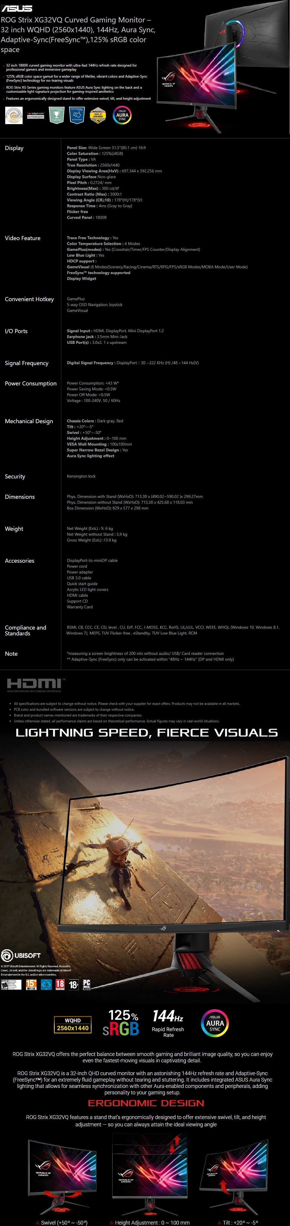 1X ASUS ROG Strix XG32VQ Curved 32” Gaming Monitor
