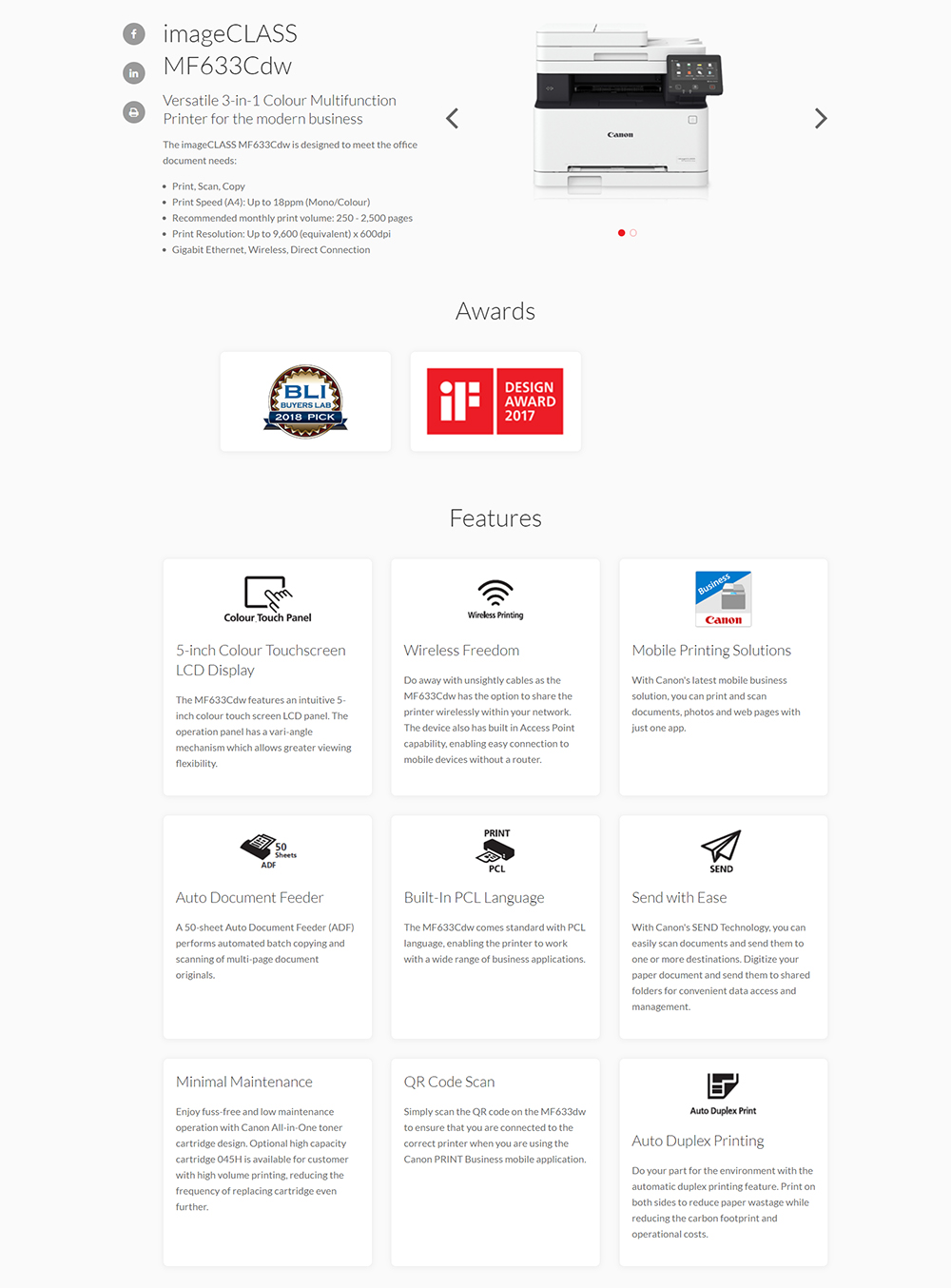 - Print Speed (A4): Up to 18ppm (Mono/Colour)
