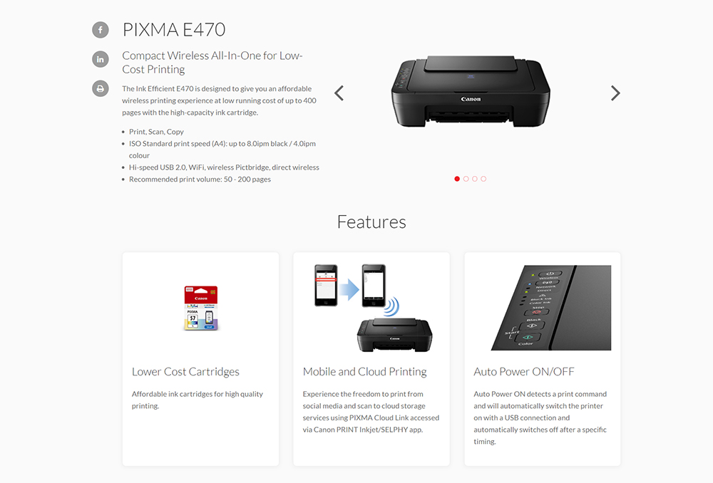 1x CANON Pixma E470 Printer with WiFi (3 Years Warranty)