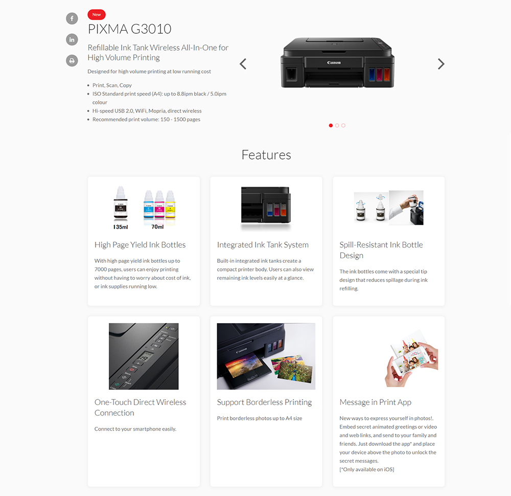 1x CANON PIXMA G3010 PRINTER (3 YEARS WARRANTY)