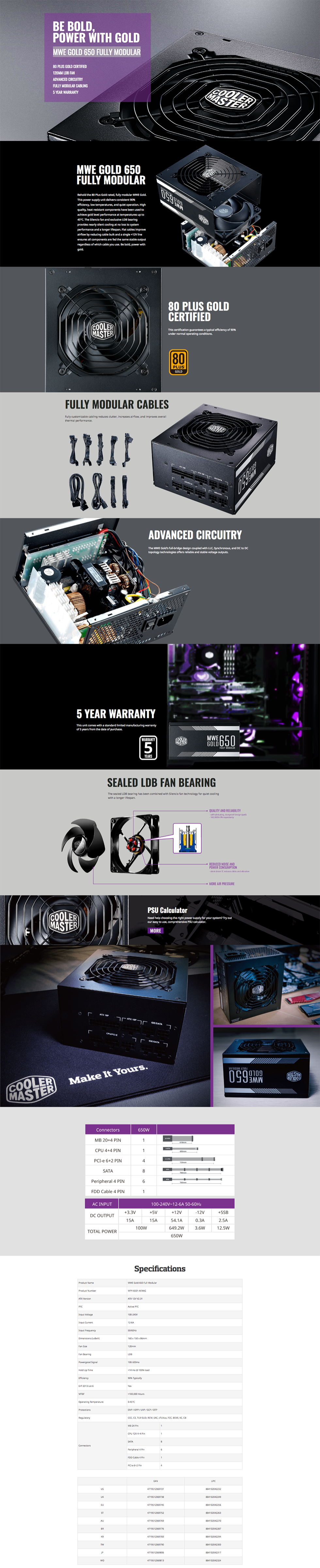 1x COOLER MASTER MWE GOLD 650 FULLY MODULAR POWER SUPPLY