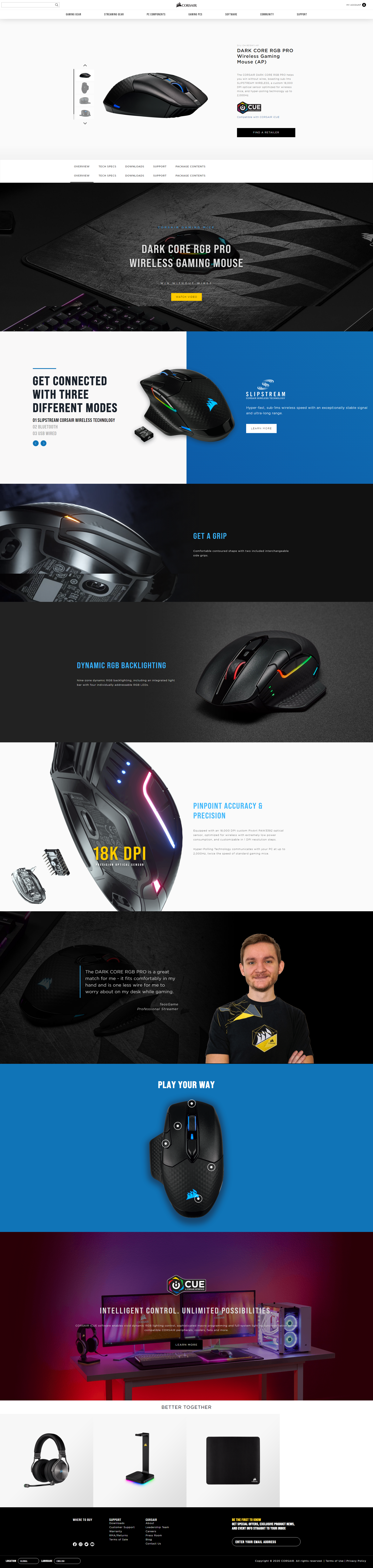 1x CORSAIR DARK CORE RGB PRO Performance Wired/Wireless Gaming Mouse with SLIPSTREAM Technology - BLK - RGB BLACK