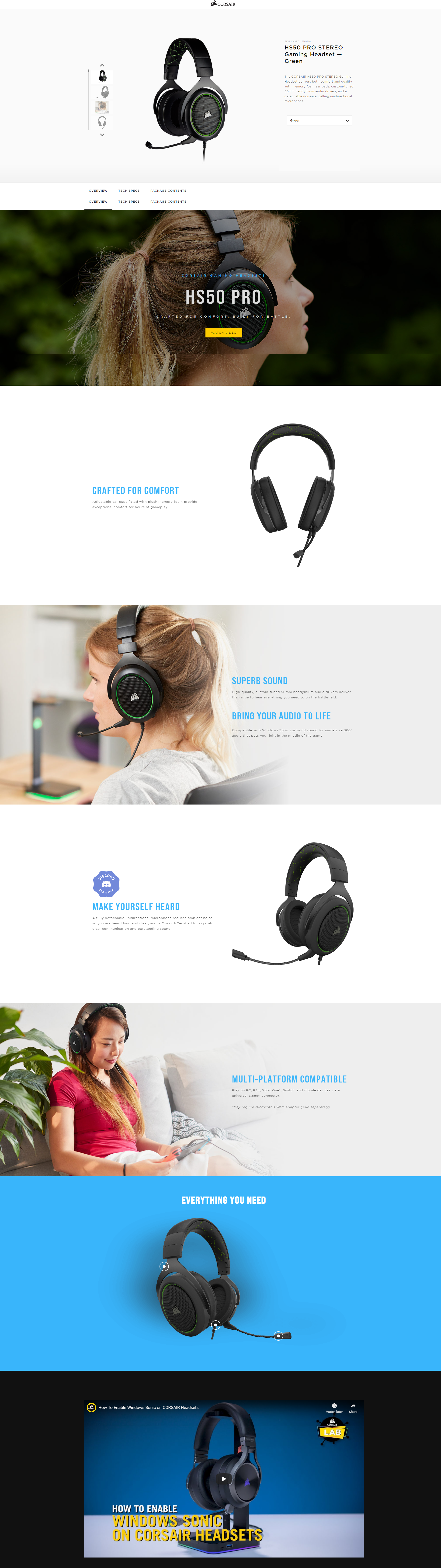 1x CORSAIR HS50 PRO STEREO Gaming Headset- Carbon/ Green/ Blue