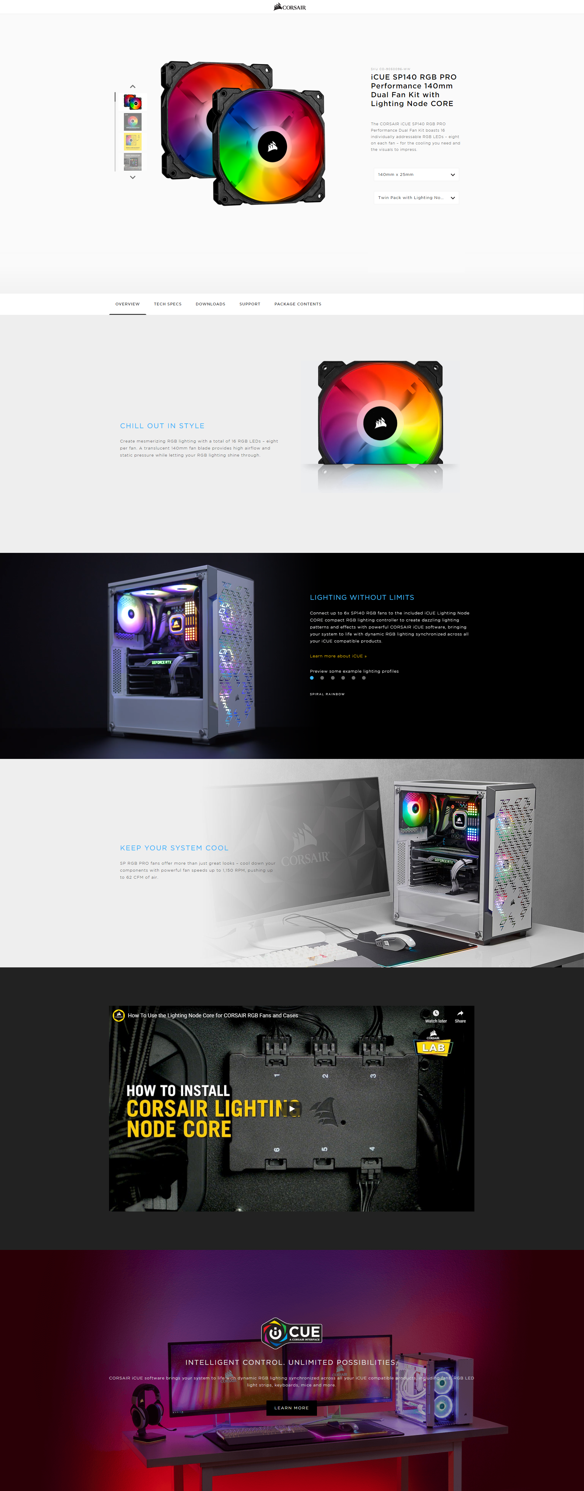 x1 CORSAIR iCUE SP140 RGB PRO Performance 140mm - (Single Fan I Dual Fan Kit with Lighting Node CORE)