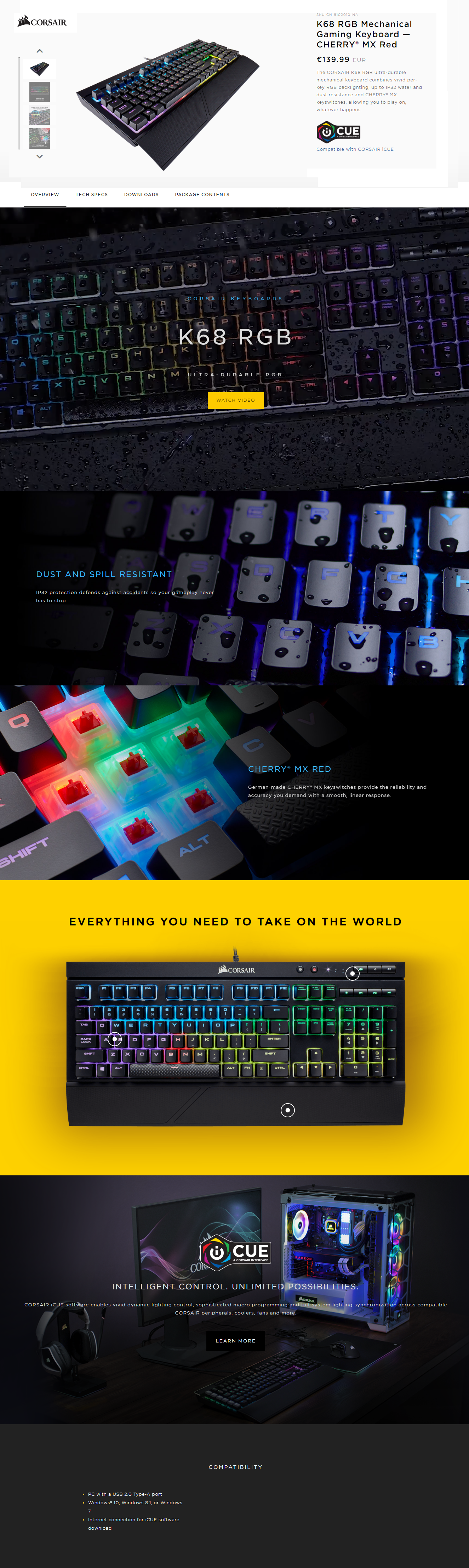 1x CORSAIR K68 RGB Mechanical Gaming Keyboard - CHERRY MX Red