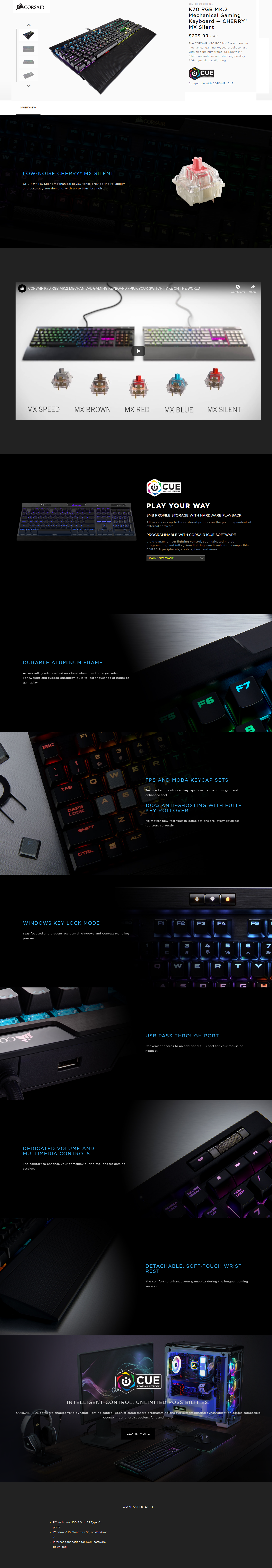 1x CORSAIR K70 RGB MK.2 RAPIDFIRE Mechanical Gaming Keyboard — CHERRY MX Silent
