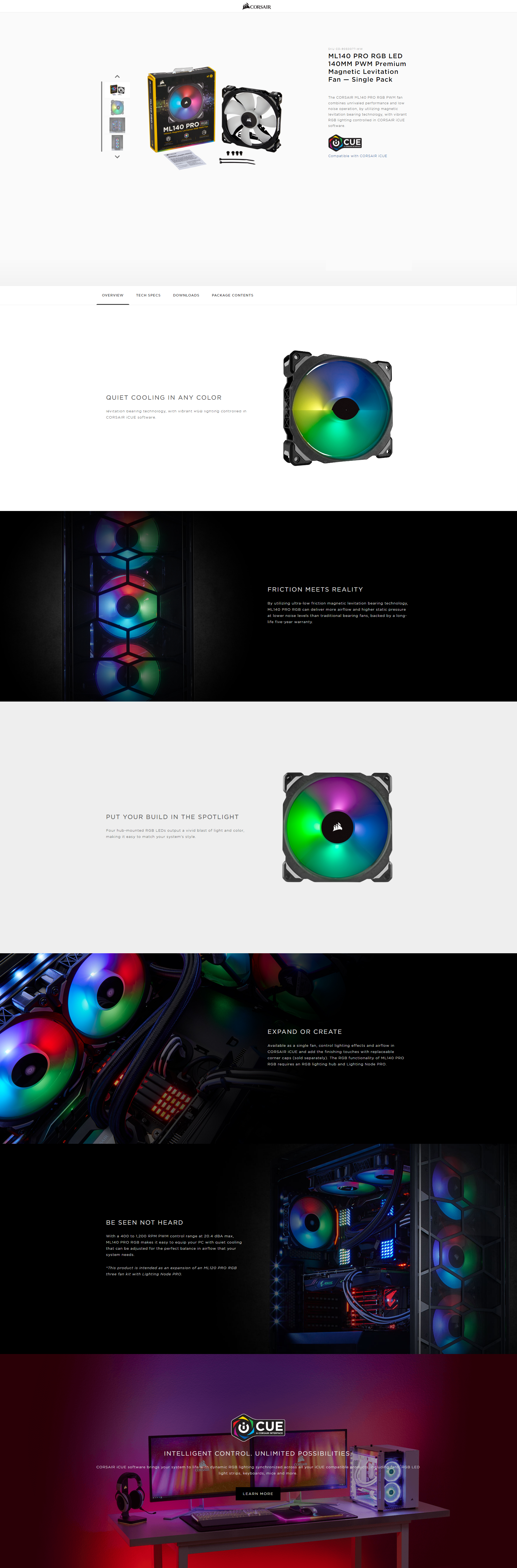 x1 CORSAIR ML140 PRO RGB LED 140mm PWM Premium Magnetic Levitation Fan ( Single Pack I Twin Fan Pack w/Lighting Node PRO)