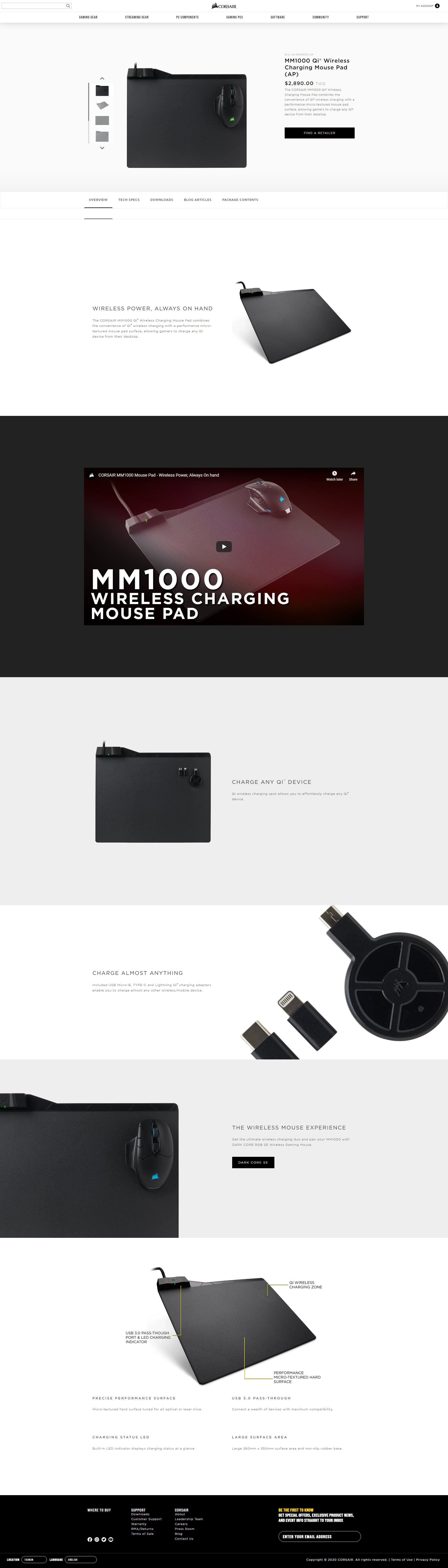 1x CORSAIR MM1000 Qi Wireless Charging Mouse Pad
