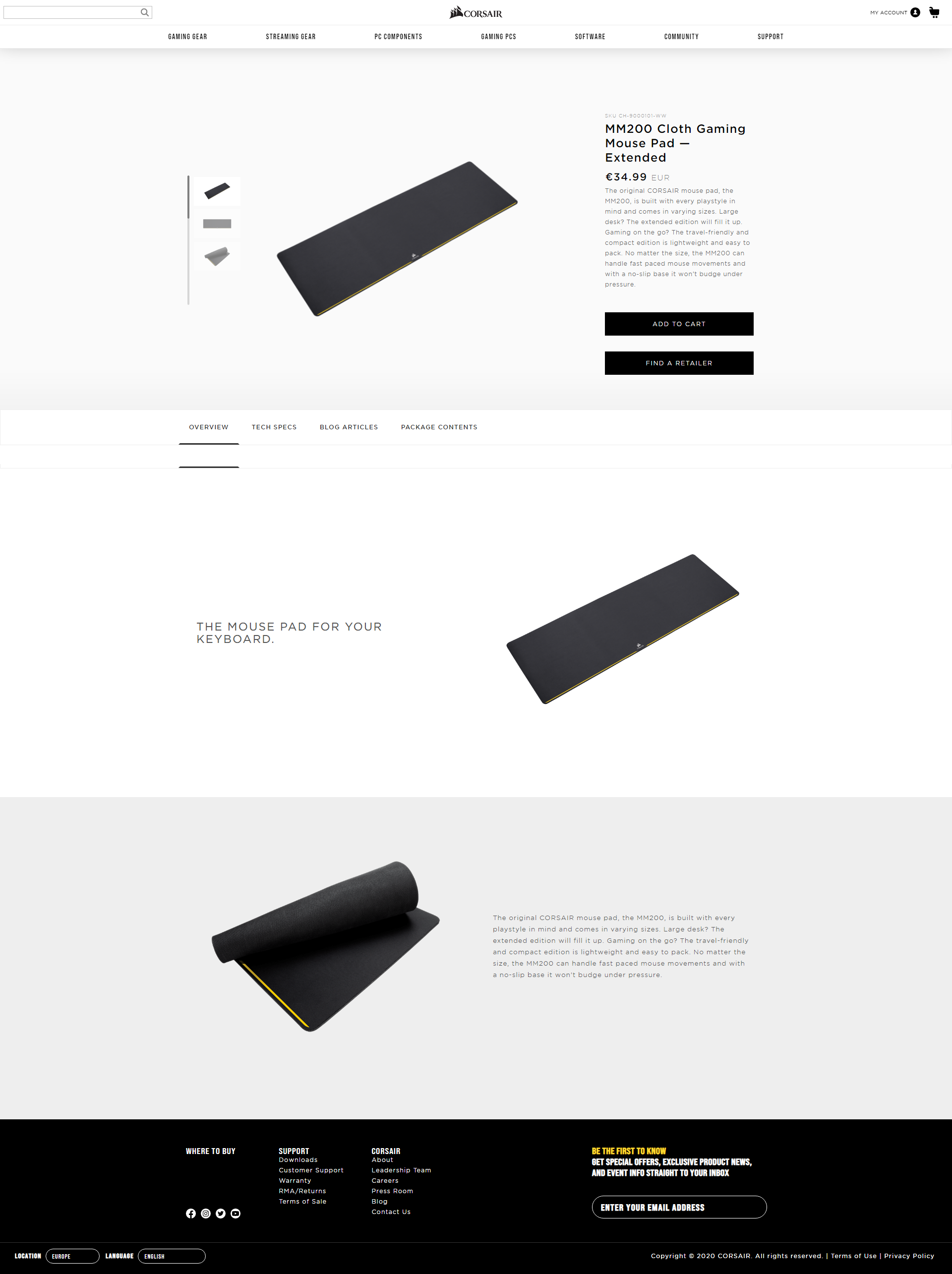 - CORSAIR MM200 Gaming Mouse Pad - Extended ( 930mm x 300mm x 3mm )