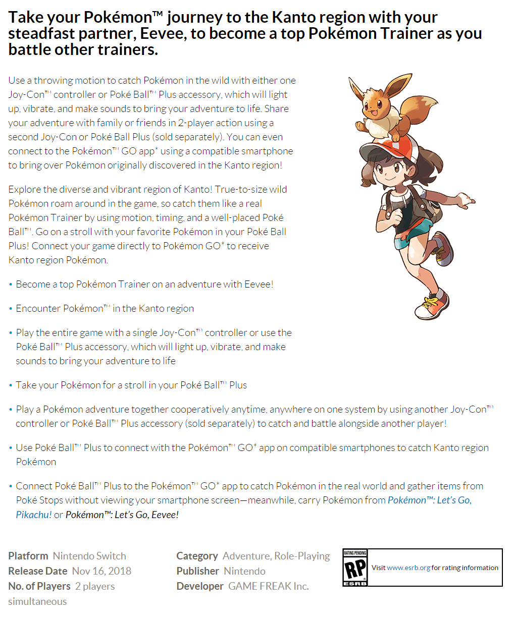 Pokémon: Let's Go, Eevee! for Nintendo Switch