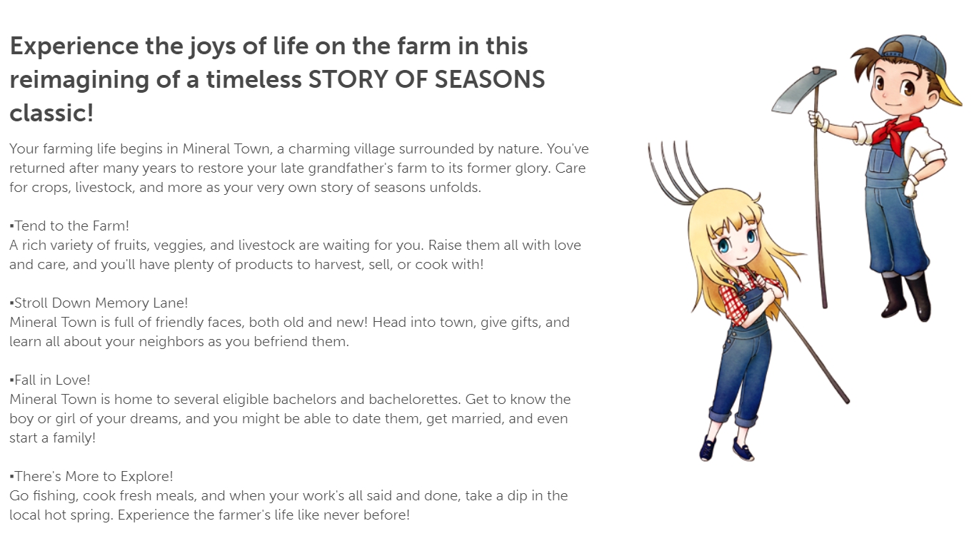 Story of Seasons: Friend of Mineral Town 牧場物語 重聚礦石鎮 for Nintendo Switch