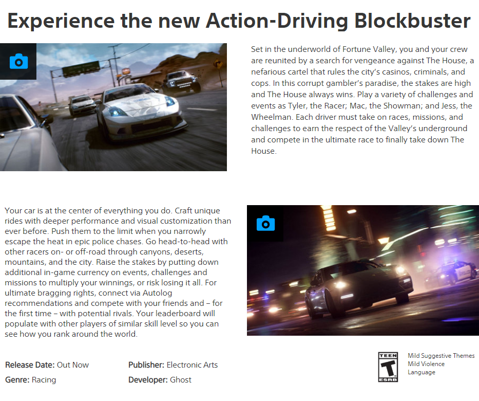 1x Need For Speed Payback for PS4 (R3)