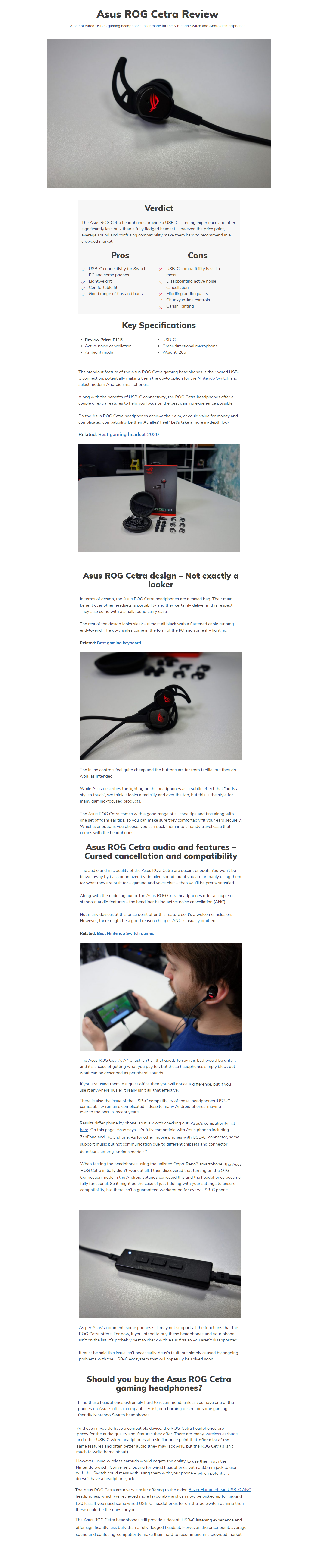 ROG Cetra Core In-ear Gaming Headphones with 10mm ASUS Essence drivers and 3.5mm connector for PC, PS4, Xbox One, mobile and Nintendo Switch