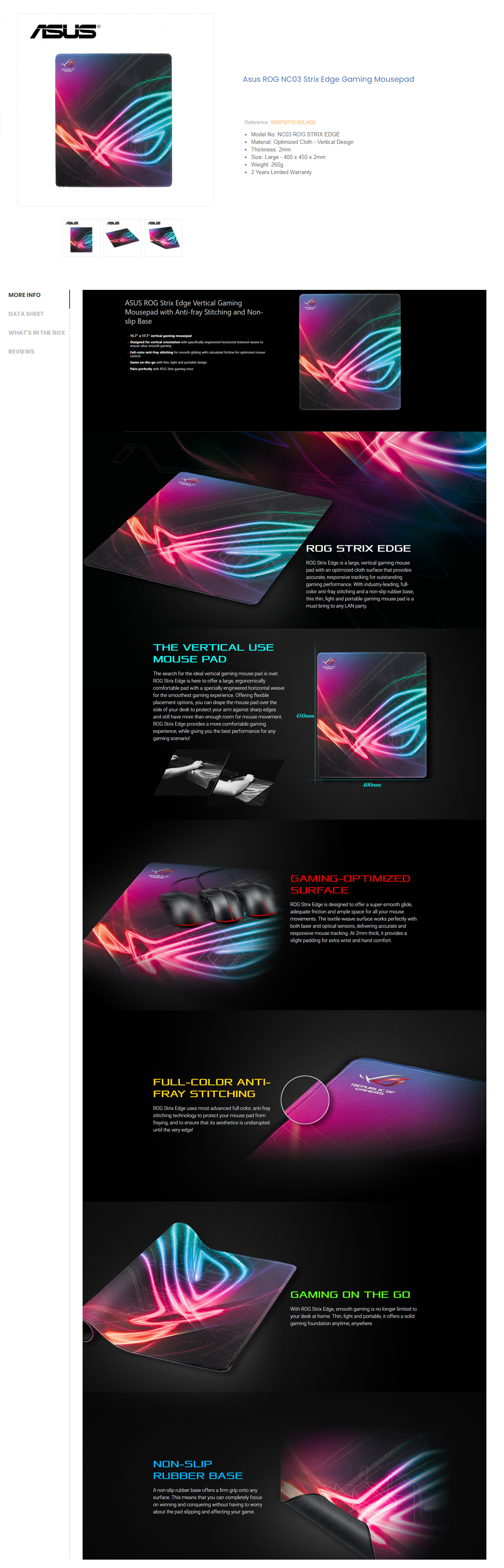 - Large, vertical gaming mouse pad