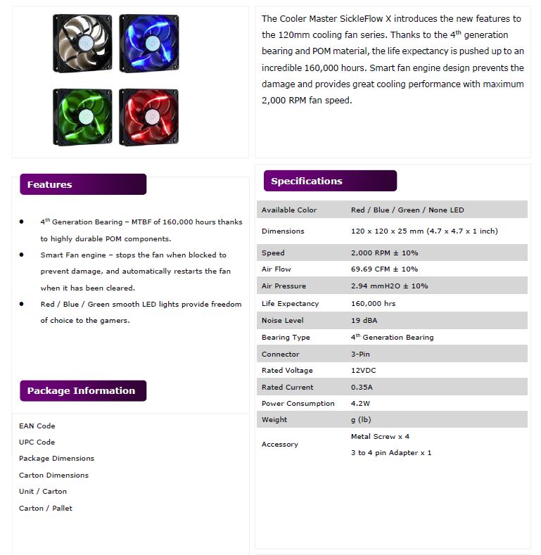 1x Cooler Master Sickle Flow X LED Gaming Fan