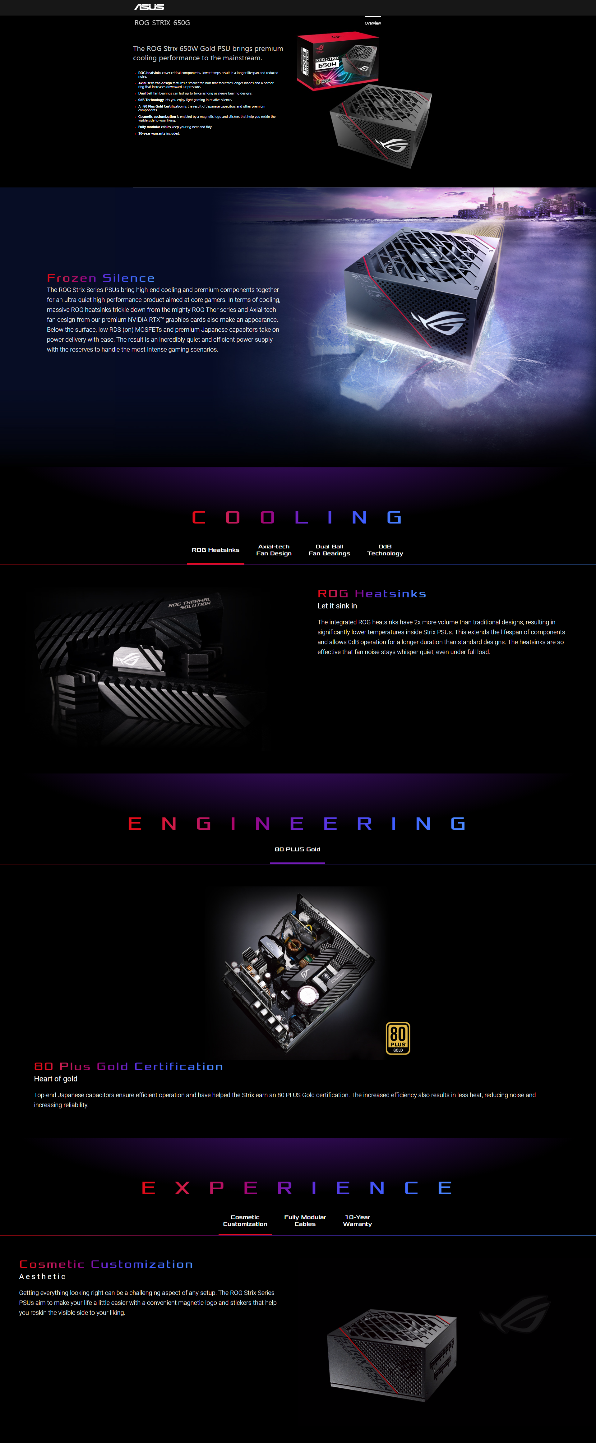 ASUS The ROG Strix 650W Gold PSU brings premium cooling performance to the mainstream.- 10 years warranty