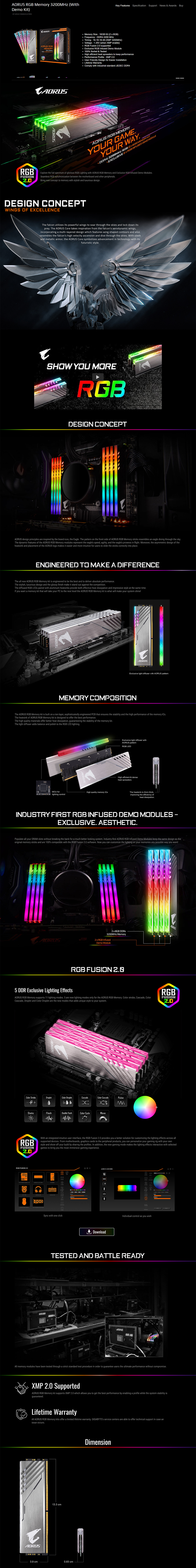 1x GIGABYTE AORUS RGB Memory 3200MHz RAM