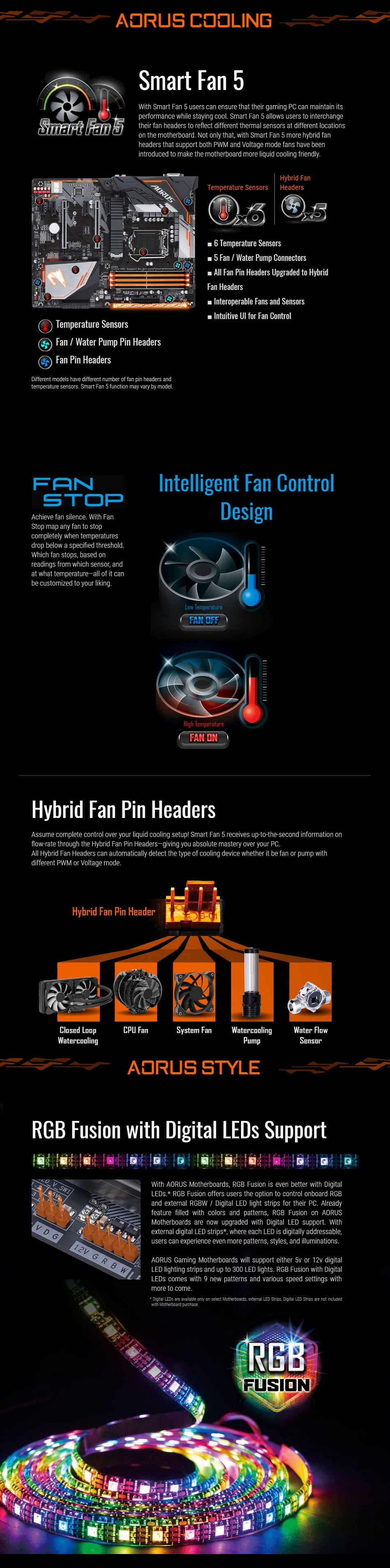 - Smart Fan 5 features Multiple Temperature Sensors and Hybrid Fan Headers with FAN STOP