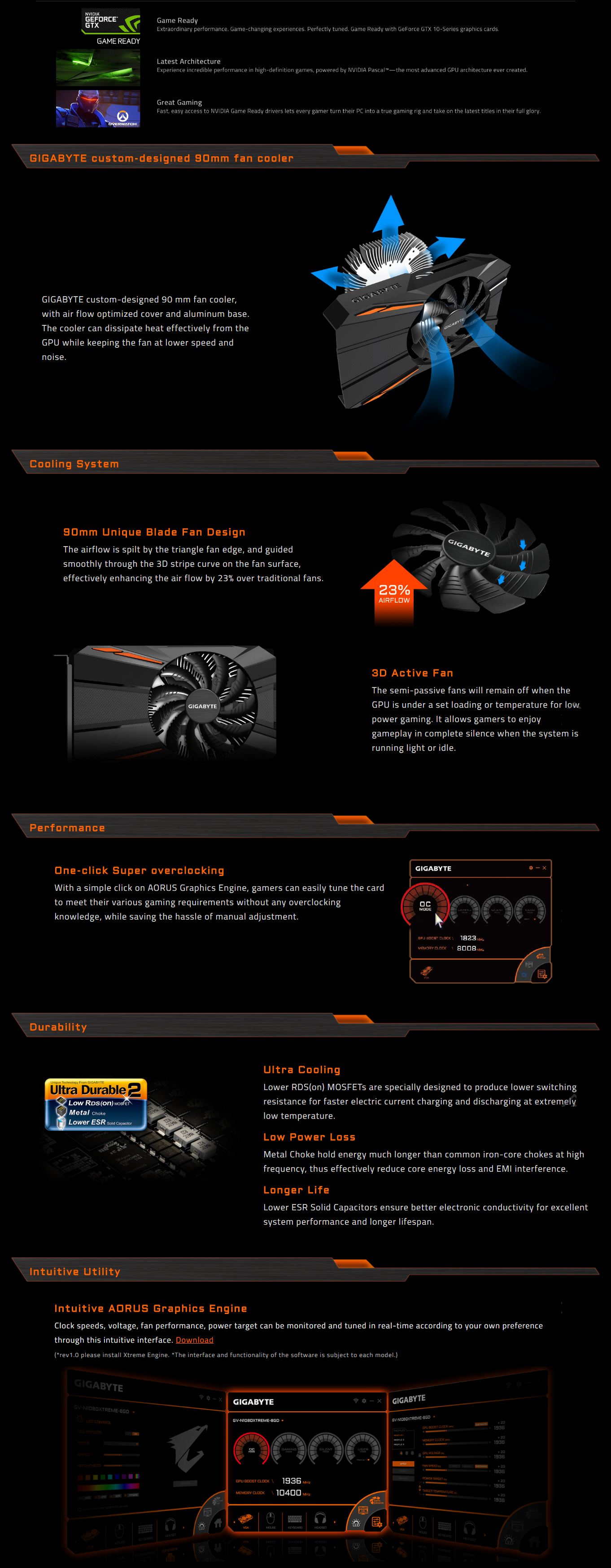 - Boost: 1430MHz/ Base: 1316MHz in OC Mode