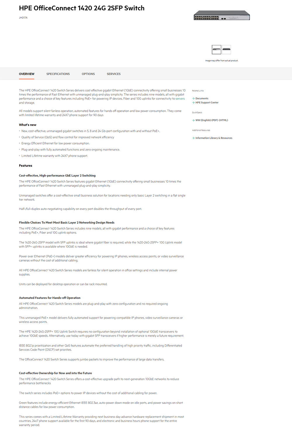 HEWLETT PACKARD ENTERPRISE OfficeConnect 1420 24G 2SFP Switch