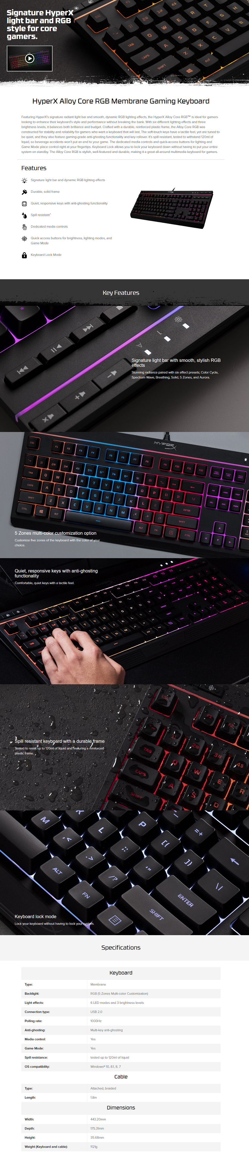 1x HyperX Alloy Core RGB Membrane Gaming Keyboard