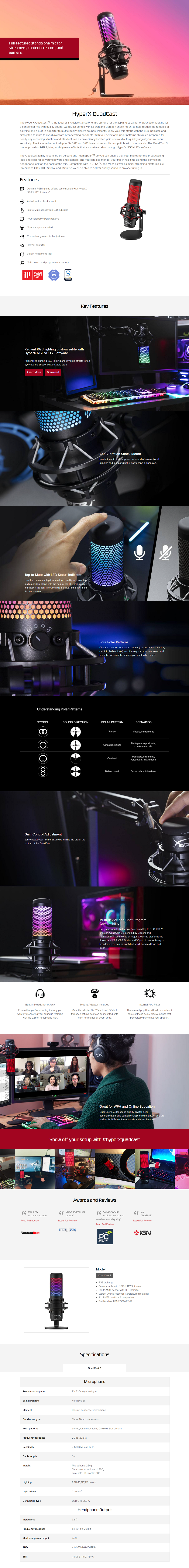 1x HyperX QuadCast S RGB USB Condenser Gaming Microphone Suitable for Streaming / Podcasting