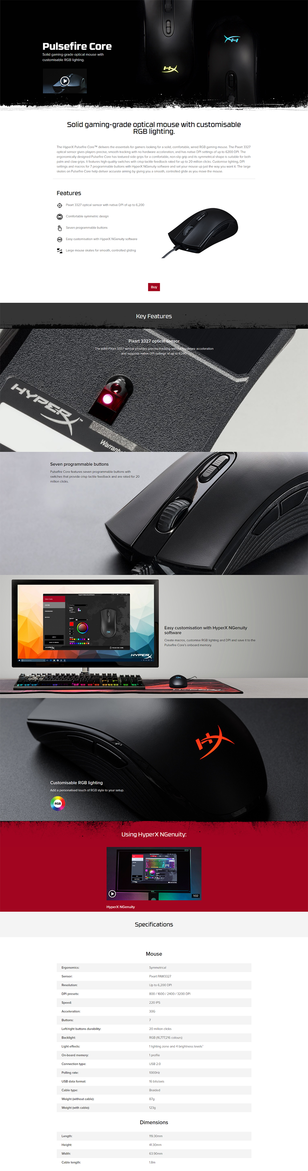 1x KINGSTON HYPERX PULSEFIRE CORE RGB MOUSE (2-YEAR WARRANTY)