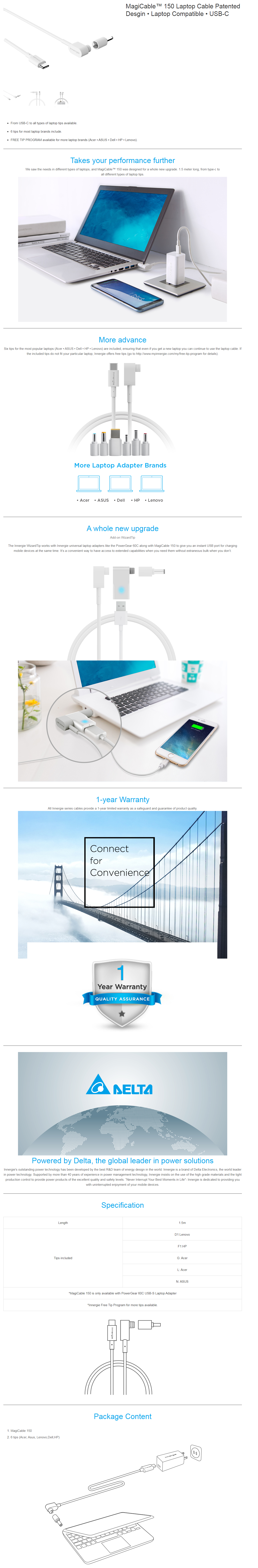 1x Innergie MagiCable™ 150 Laptop Cable Patented Desgin • Laptop Compatible • USB-C