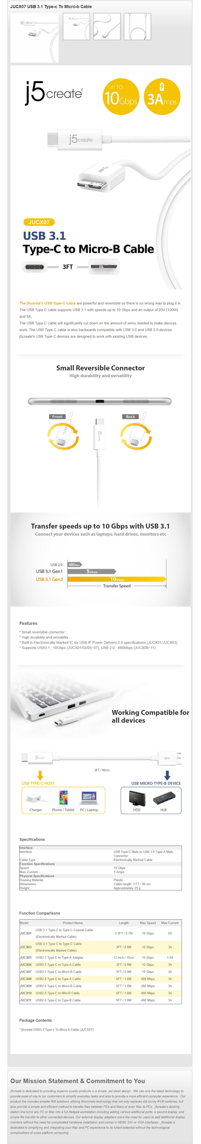 1 X J5 JUCX07 USB 3.1 Type-c To Micro-b Cable