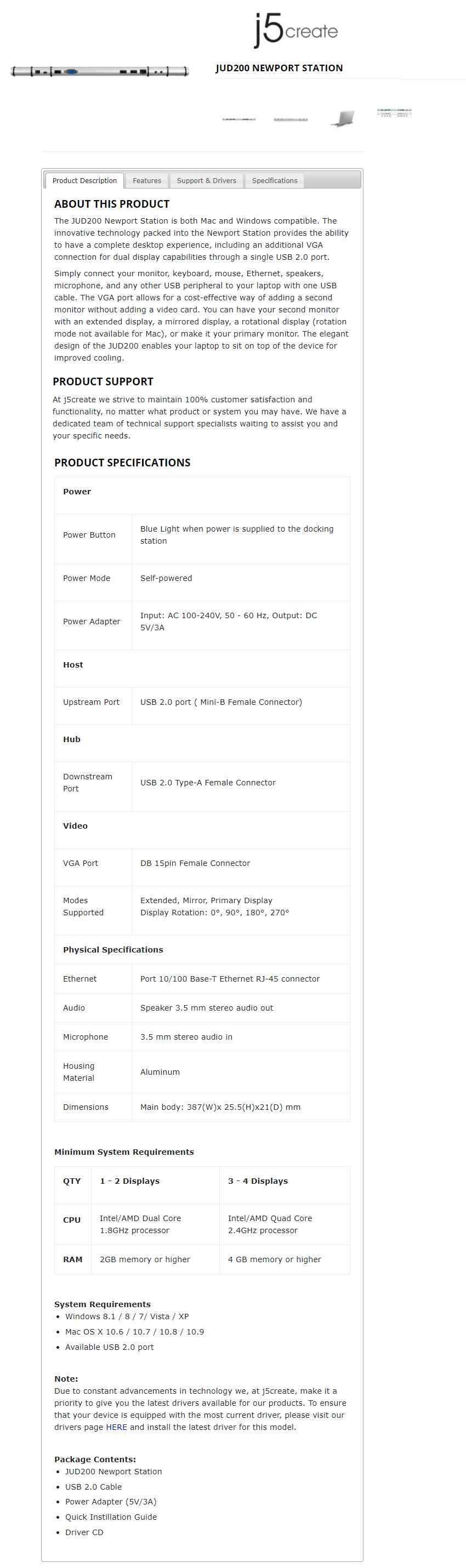 1X J5 JUD200 USB 2.0 NEWPORT STATION
