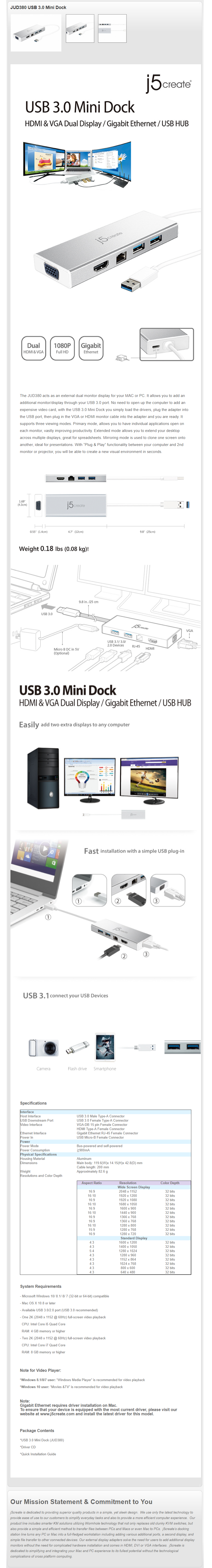 1 X J5 JUD380 USB 3.0 Mini Dock