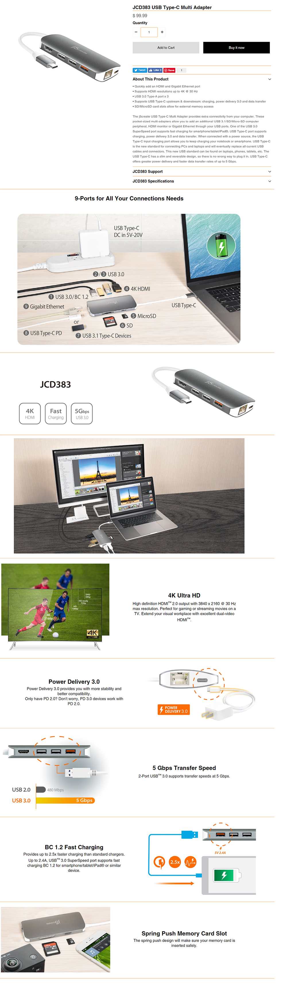 1x J5 CREATE JCD383 USB Type-C Multi Adapter