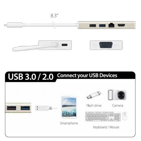 The JCD376 USB 3.1 Type-C Mini Dock provides extra connectivity for your computer. These pocket-sized multi- adapters allow you to add an additional USB 3.1/3.0/2.0 computer peripheral, HDMI/VGA monitor or gigabit Ethernet through your USB port. USB type–C is the new standard for connecting PCs and laptops and will eventually replace all current USB cables and connectors.