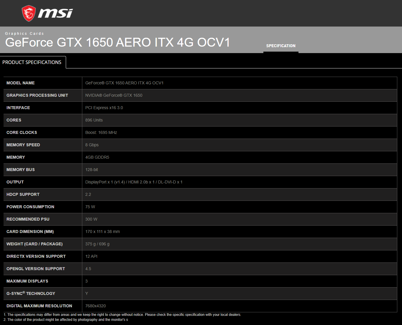 | Product SKU | MSI-GTX-1650-AERO-ITX-4G-OC V1-Graphic-Card |