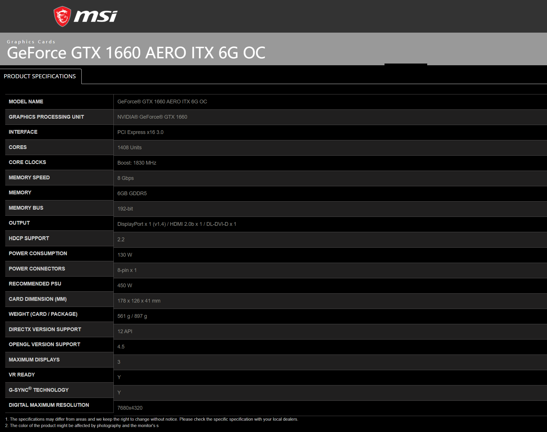 | Product SKU | MSI-GTX-1660-AERO-ITX-6G-OC |