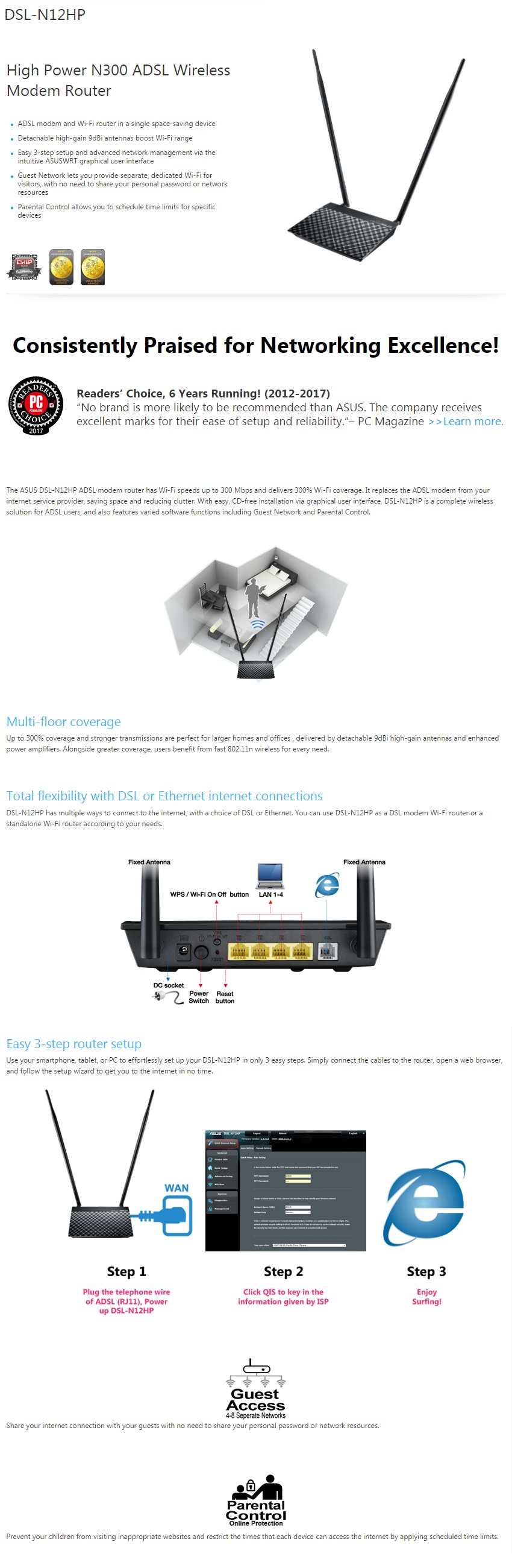 1 x Asus (DSL-N12HP) High Power N300 ADSL Wireless Modem Router