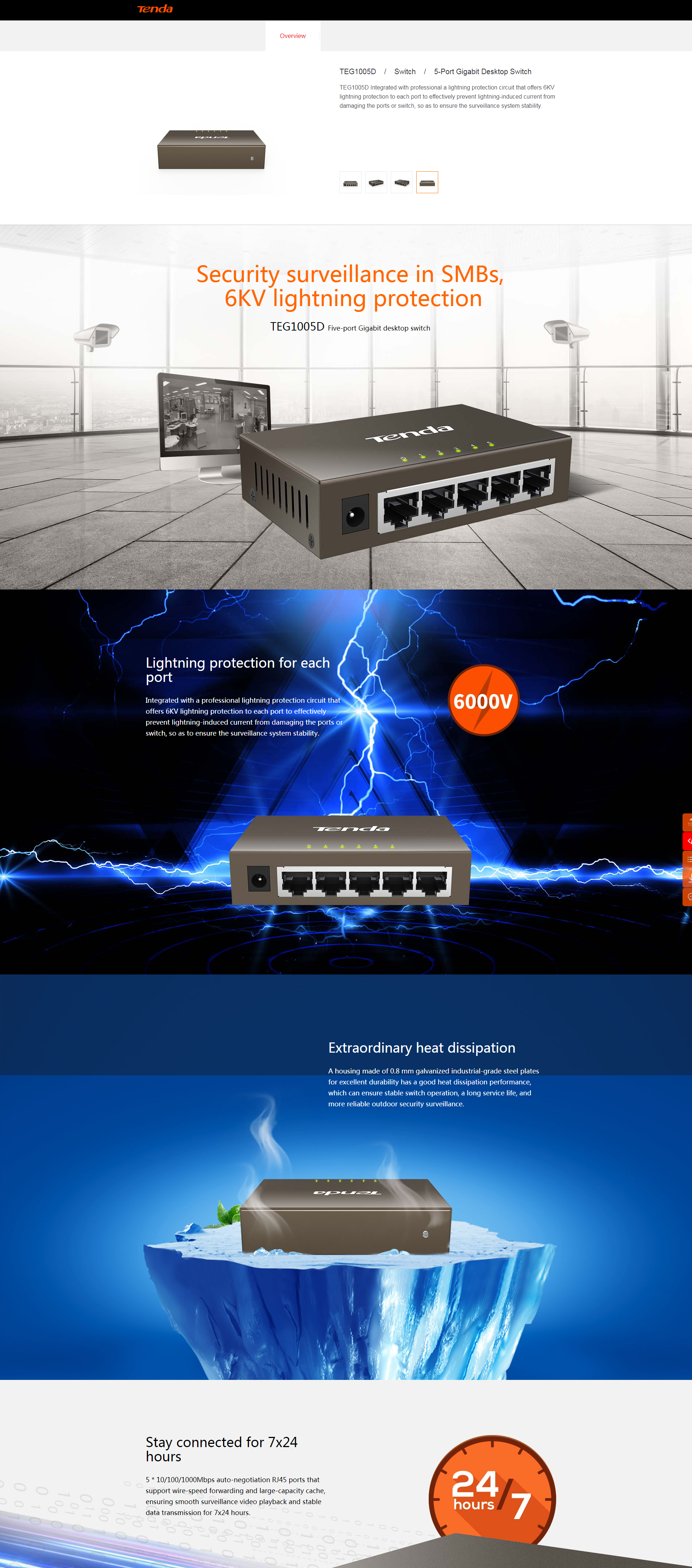 - LIGHTNING SECURITY Features 6kV Lightning-Protection on all ports to prevent power spikes and induction currents from lightning strikes