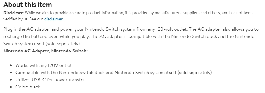 | Product SKU | AC Adapter for Nintendo Switch (ORIGINAL) |