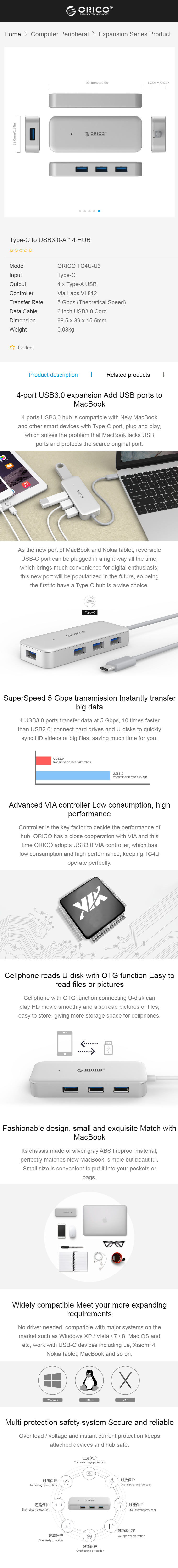 1x ORICO 4 Port Type-C Hub (TC4U-U3)