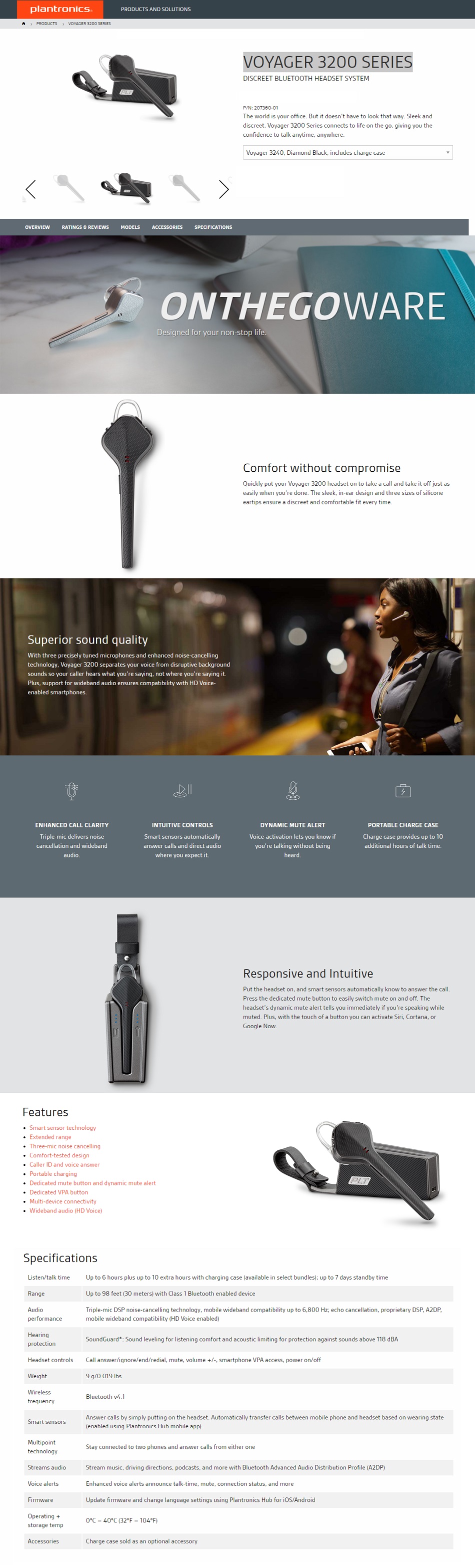 1 x Plantronics Voyager 3240 Diamond Black Headset System